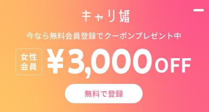 クーポン(女性会員)+冊子プレゼントを行っています!(記事執筆時の情報なので詳細はキャリ婚サイトにて御確認御願い致します)女性会員専用の質問等も利用出来るので女性が常に使いやすく優遇されているのが嬉しいです。