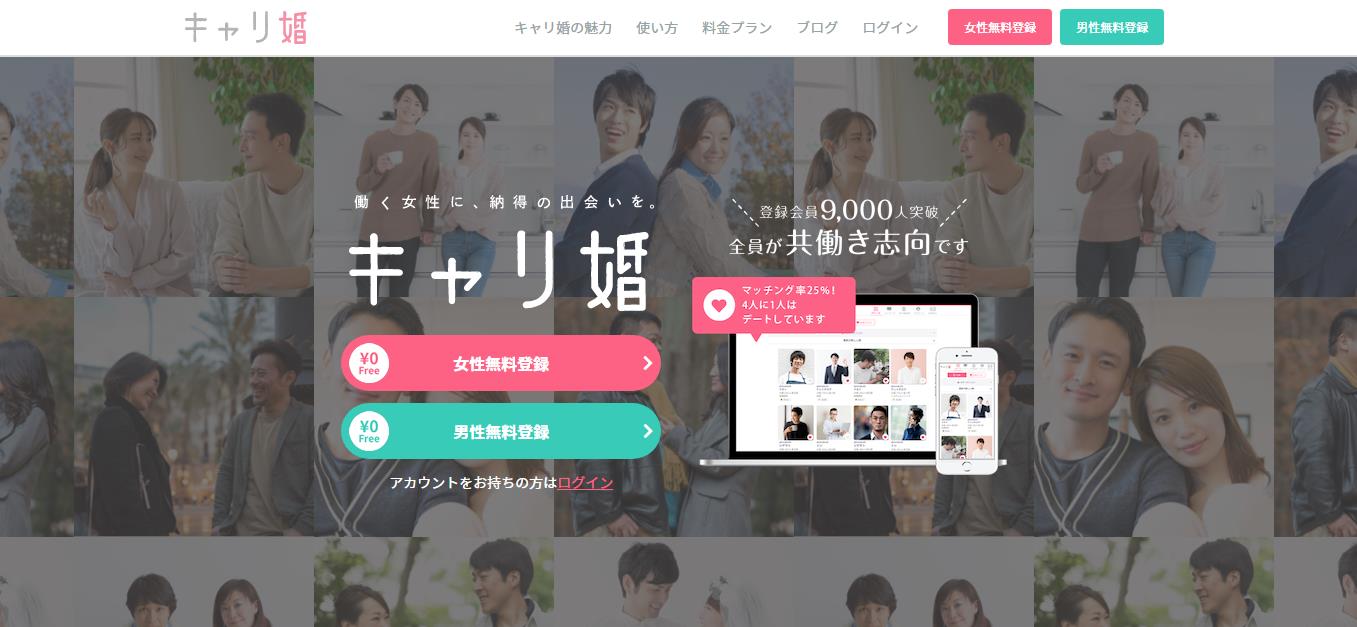 キャリ婚は共働きに賛同している男性、結婚を本気でしようと思っている独身男性のみ参加していて尚且つ審査に通過した男性しか会員になれません。なので必然的に良質な男性が多い状況になっています。